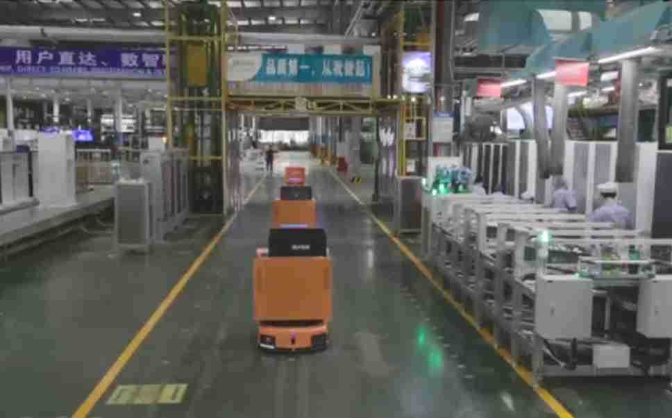 为车载冰箱物流配送打造的智能解决方案,,,,包含产中物流通过潜伏举升AMR搬运至线边,,,,产后成品物流智能仓储,,,流程包含产中物流智能齐套入库,,,,线边安灯叫料AMR智能配送至线边,,,成品入库、、、、出库,,通过无人堆高车机器人,,智能仓储管理替代人工作业管理,,,实现更高存储、、、更高效率、、更具柔性化的解决方案。。。。